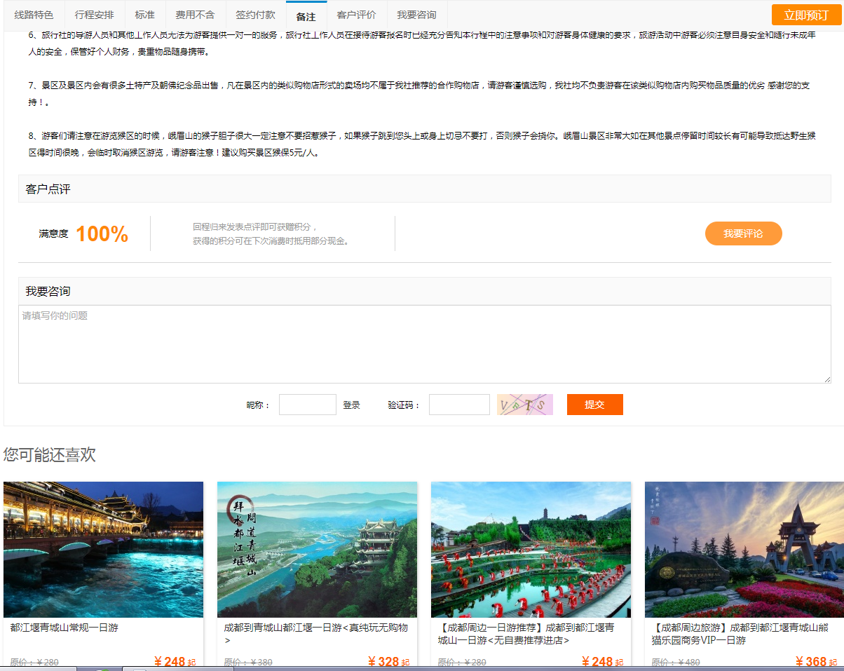 產品詳情頁,是網站某條產品的具體展示區(qū),它能進一步激發(fā)顧客的購買欲望。畢竟游客在看線路的時候,不能真正體驗到,只能通過網站的展示以及已經購買過此條線路產品的游客評價來了解,然后決定是否購買。就像一個連貫的故事,我們看了首頁這個開頭,還要繼續(xù)往下看產品詳情頁,直到看到結尾形成轉化。因此,站長需要在游客的關注點上對產品詳情頁多下功夫。