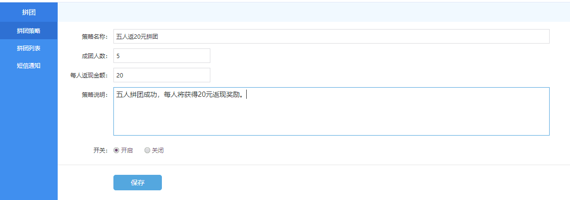 現在,要建立這樣一個理想的拼團購流程,只需在安裝應用后,通過思途后臺進行相應的操作就可以完成了。沒有任何規則的限制,所有的返現政策和規則均由平臺根據自身運營情況來設置,和平臺的優惠政策也沒有沖突。哪些產品可以拼團,返現根據人數怎么規定,一切,都由我們商家說了算。