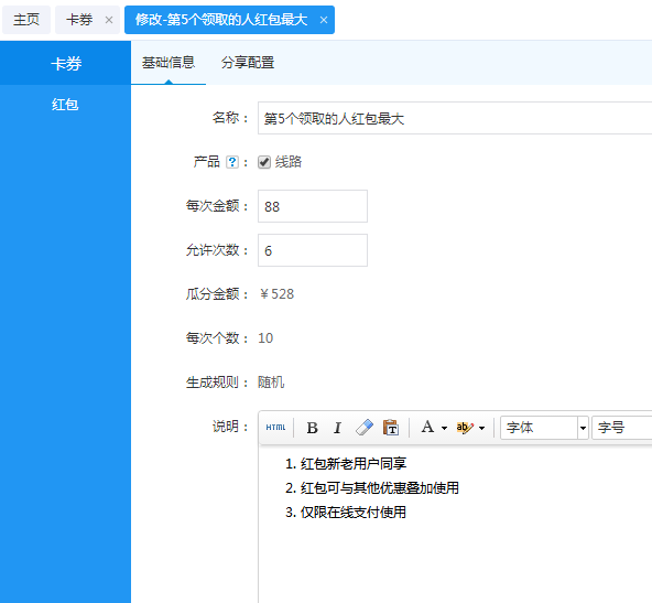 提醒大家,拼紅包應(yīng)用的入口在輔助營銷欄的“卡券”類哦!