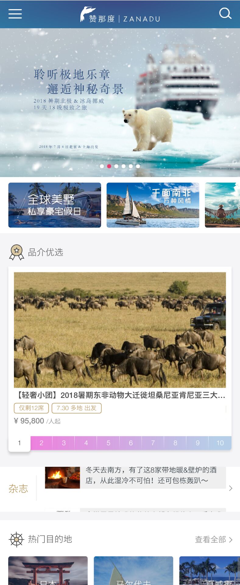 贊那度主打高端輕奢精品游,手機網站整體設計定位格調高端,界面設計精美,其配圖和文案基調一致,簡潔大氣有質感,符合品質游的定位,而豐富多樣的產品推薦則能更好滿足高端客戶的個性需求。制作如此精良,也難怪蘋果官網會將贊那度作為案例推薦呢!
