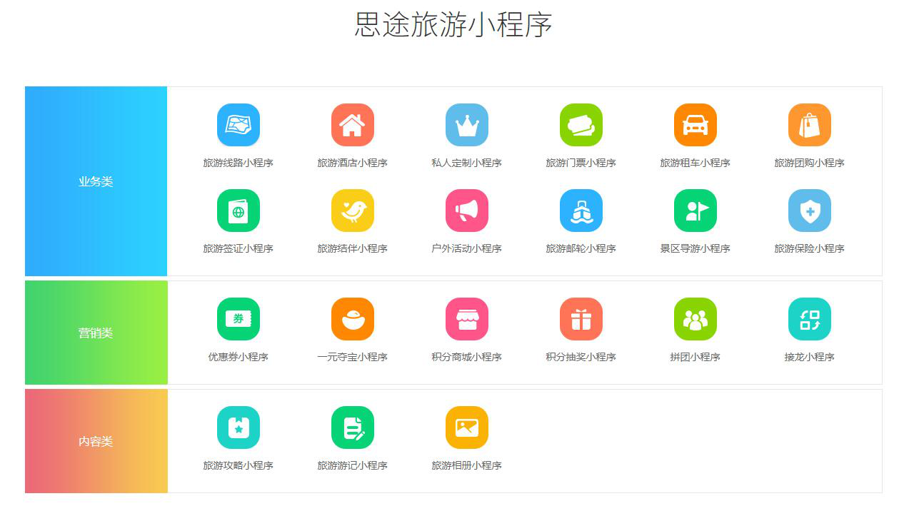 大家都知道,早在小程序剛推出之際,思途為了幫助大家搶占這波流量紅利,率先研發(fā)了多種小程序產(chǎn)品,全面覆蓋了業(yè)務(wù)開展、營銷推廣、內(nèi)容分享這三大類旅行社主要業(yè)務(wù)。同時(shí),思途本著不斷優(yōu)化、精益求精的精神,對(duì)小程序也持續(xù)著改進(jìn)與完善的工作。