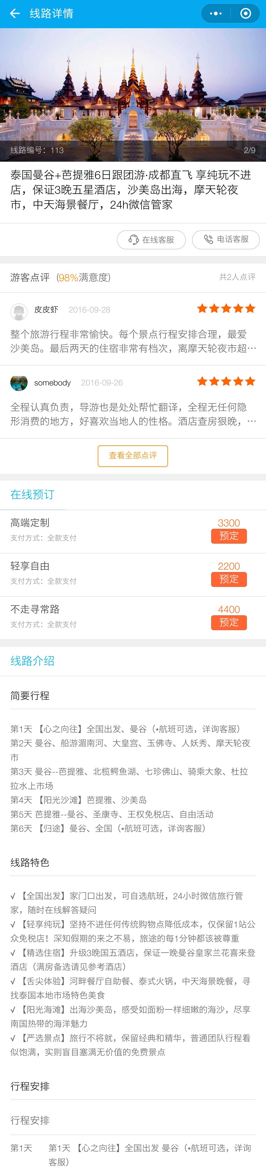 新版本中,加入了在線客服功能。除了之前提供的電話咨詢外,用戶現(xiàn)在可以直接在產(chǎn)品詳情頁點(diǎn)擊在線客服,進(jìn)行線上產(chǎn)品咨詢。用戶瀏覽產(chǎn)品和預(yù)定行程將變得更加流暢,高效。