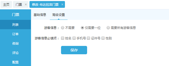 2.對于需要的門票,商家可靈活配置需要的類型,減少游客不必要的填寫步驟,同時也能獲得需要的游客信息。