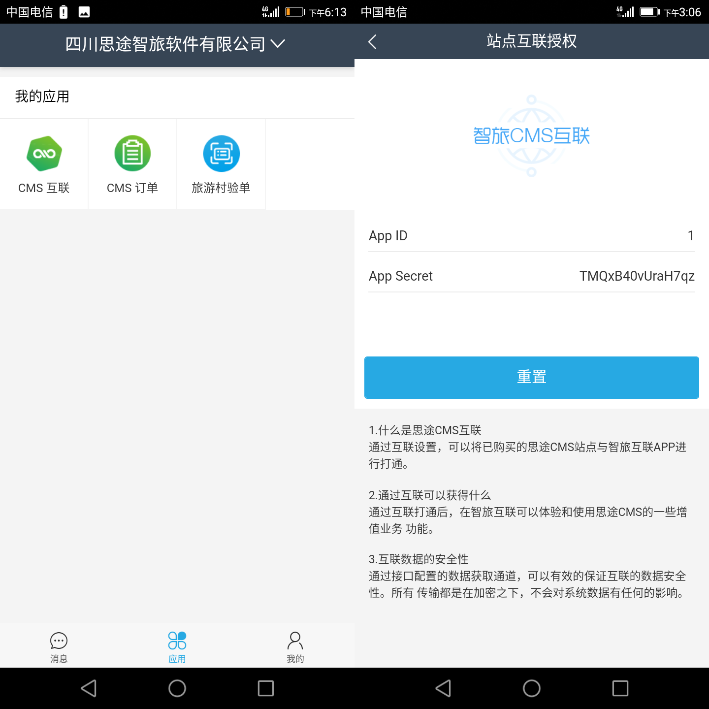 怎么做呢?下載智旅互聯(lián)APP,將我的應用中的APP ID及APP Key按要求填入互聯(lián)授權(quán)應用內(nèi),就能夠在智旅互聯(lián)APP內(nèi)處理CMS業(yè)務訂單啦!