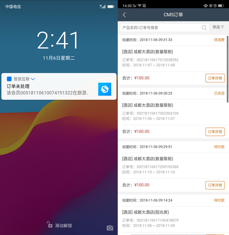 在授權(quán)后,我們的CMS用戶就可以直接利用CMS訂單功能查看你的所有業(yè)務訂單了。每當有新的訂單,我們的APP也會在第一時間向你自動推送新的訂單通知。這樣一來,大家就不用時刻守著電腦。而在今后,智旅互聯(lián)APP還將拓展更多的模塊化應用,方便大家在手機上處理日常的業(yè)務。