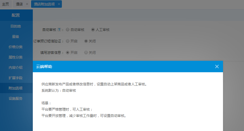 對于酒店這一款大家常用的應用,本次思途也做了一些新的改動。不少旅游電商平臺都入駐了供應商,那么在供應商較多,產(chǎn)品較豐富的時候,開啟自動審核就可以幫助我們管理員減少審核供應商發(fā)布信息的工作量,整體的工作效率也可以提高。