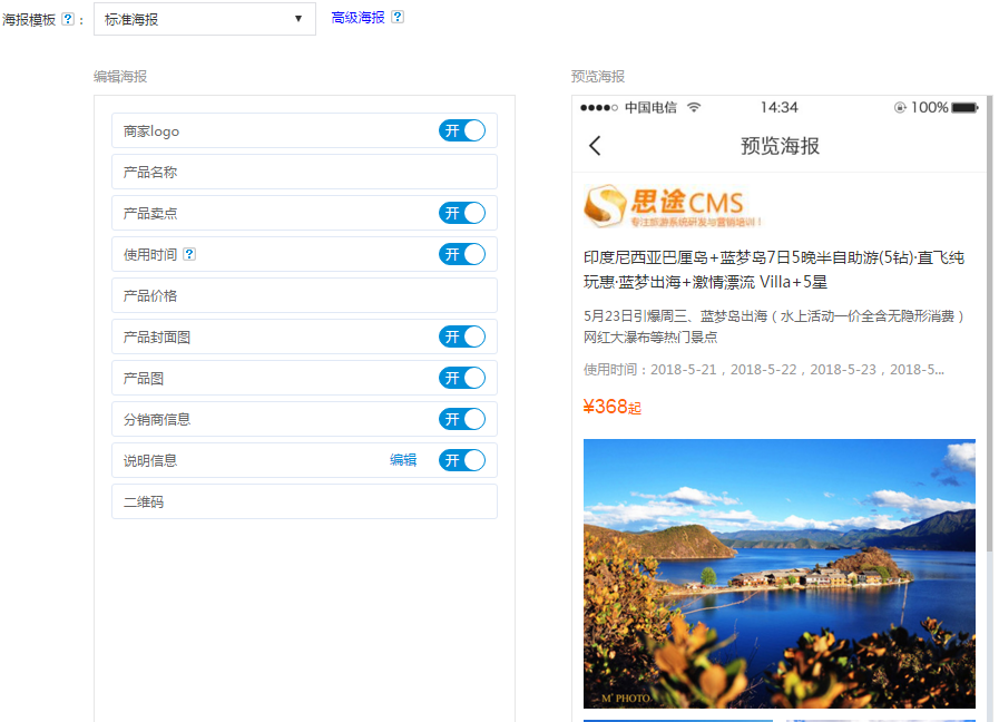 了解思途的朋友,應該都很熟悉思途的全民分銷利器——移動裂變分銷。在去年,思途對這個應用進行了全面的升級,最大的亮點就是增加了海報模板的功能。以前想在微信端搞活動的時候,我們商家都需要人工對產品依次進行海報的排版設計,要是涉及的產品數量很多,那工作量就非常大了。