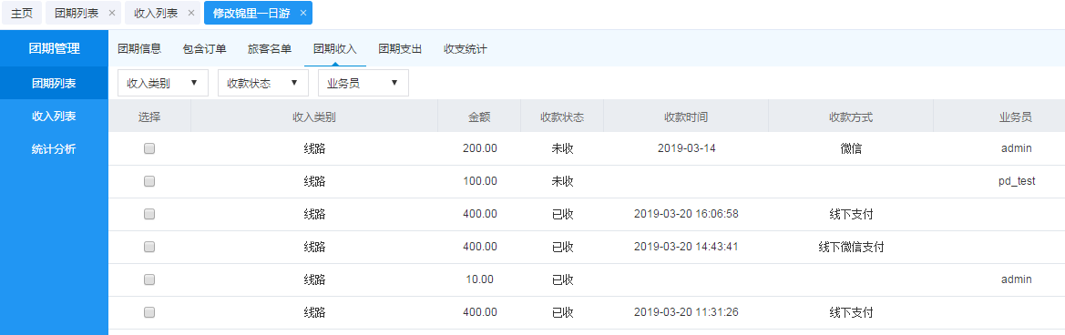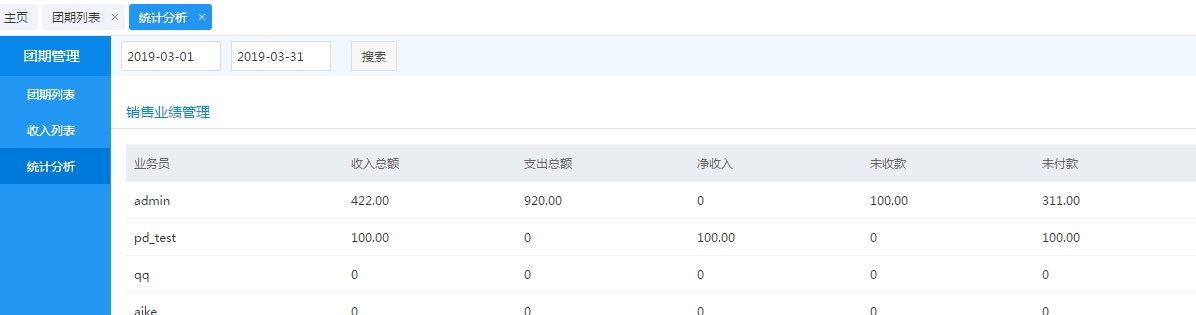 1.新增團期報表:后臺自動統計各業務人員的銷售業績,隨時掌握員工業務情況;