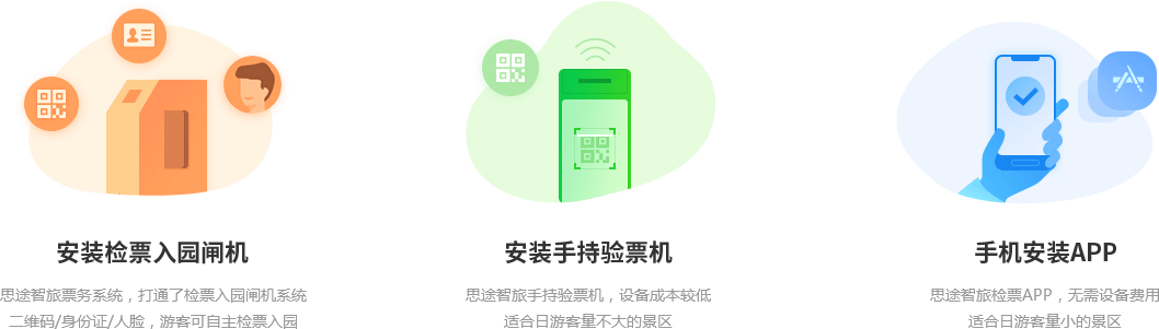 思途自主研發的景區票務系統,支持多渠道在線售票,既可實現游客“在線一鍵購票、掃碼快速入園”自助化入園體驗,同時也支持窗口人工售取票的人性化服務流程,既可有效節省景區人力成本,解決游客排隊煩惱。